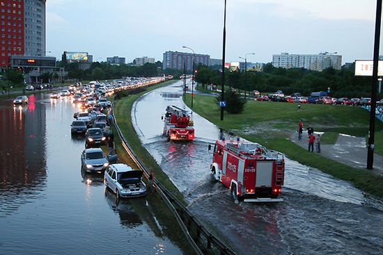 Większość warszawskich ulic jest zalanych wodą, bo studzienki kanalizacyjne nie.